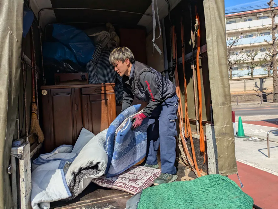 今回は、2名体制で効率よく動線を確保し、洗濯機や冷蔵庫などの重量物を含む計12点の品目を、わずか90分でトラックへ積み込み完了しました。最後は、家具移動後のホコリや汚れを簡易清掃し、そのまま大家さんに引き渡せる状態まで仕上げました。