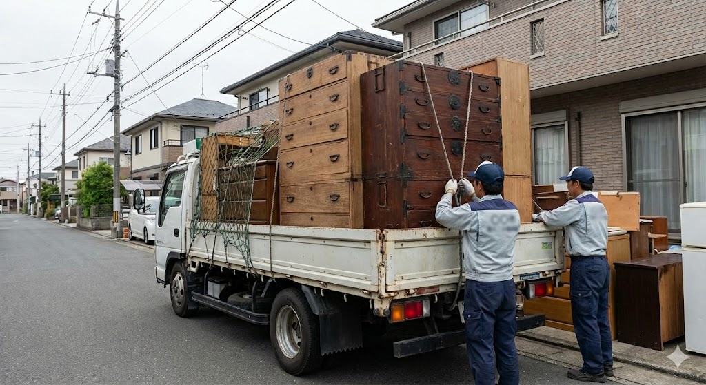 タンスの処分で最も重要なのは「部屋から外へ運び出し」です。自治体への持ち込みは格安ですが、搬出は自力で行う必要があります。