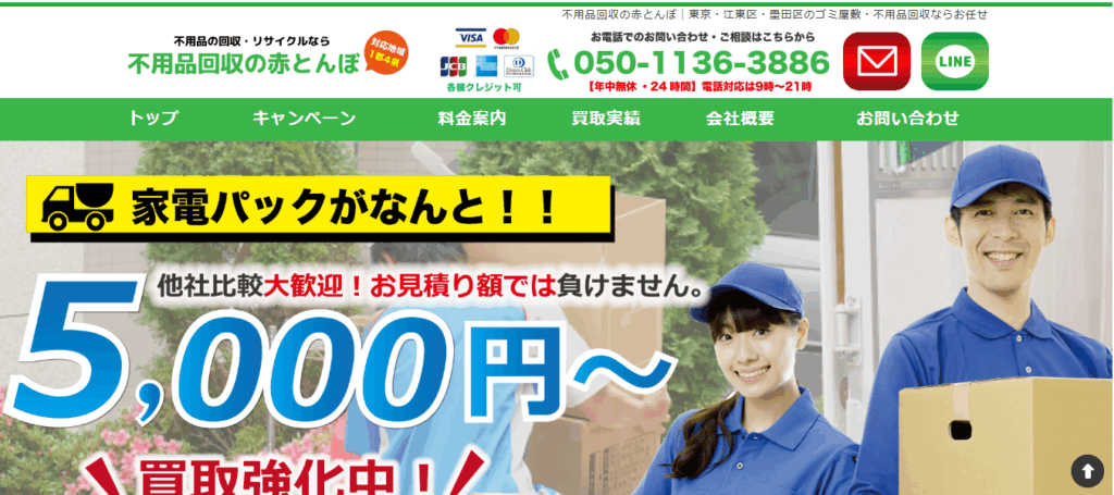 不用品回収の赤とんぼは、船橋市に拠点を置き、不用品回収、生前整理、遺品整理、ゴミ屋敷清掃などを行っています。業界最安値に挑戦しており、他社の見積もりより1円でも高い場合は相談可能です。最短当日、30分以内に作業開始可能なスピード対応に自信を持っています。土日祝日や平日の深夜も対応しており、お客様の都合に合わせて柔軟な日時指定が可能です。