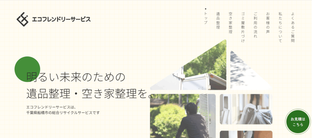 エコフレンドリーサービスは、船橋市に拠点を置き、遺品整理、空き家整理、ゴミ屋敷の片付けをメインにサービスを提供しています。ヒアリングを徹底し、お客様に最適なプランを提案することを重視しています。