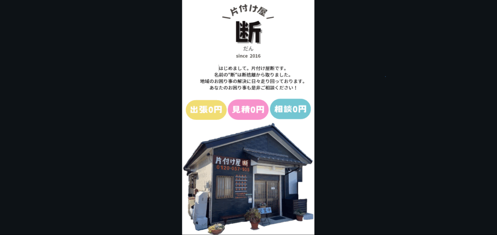 | 店舗名 | 片付け屋断 |