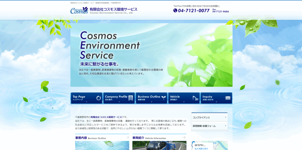 有限会社コスモス環境サービスは、野田市を拠点に、一般廃棄物収集運搬業許可を持つ、