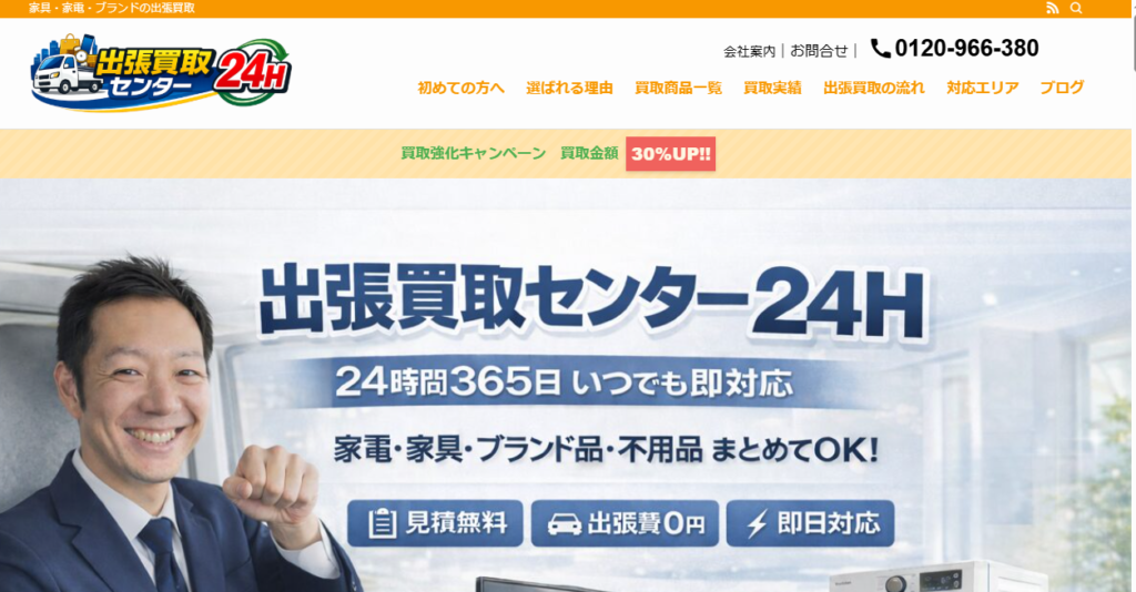 出張買取センター24Hは、東京・埼玉・神奈川・千葉全域で不用品回収・買取を行っている業者です。