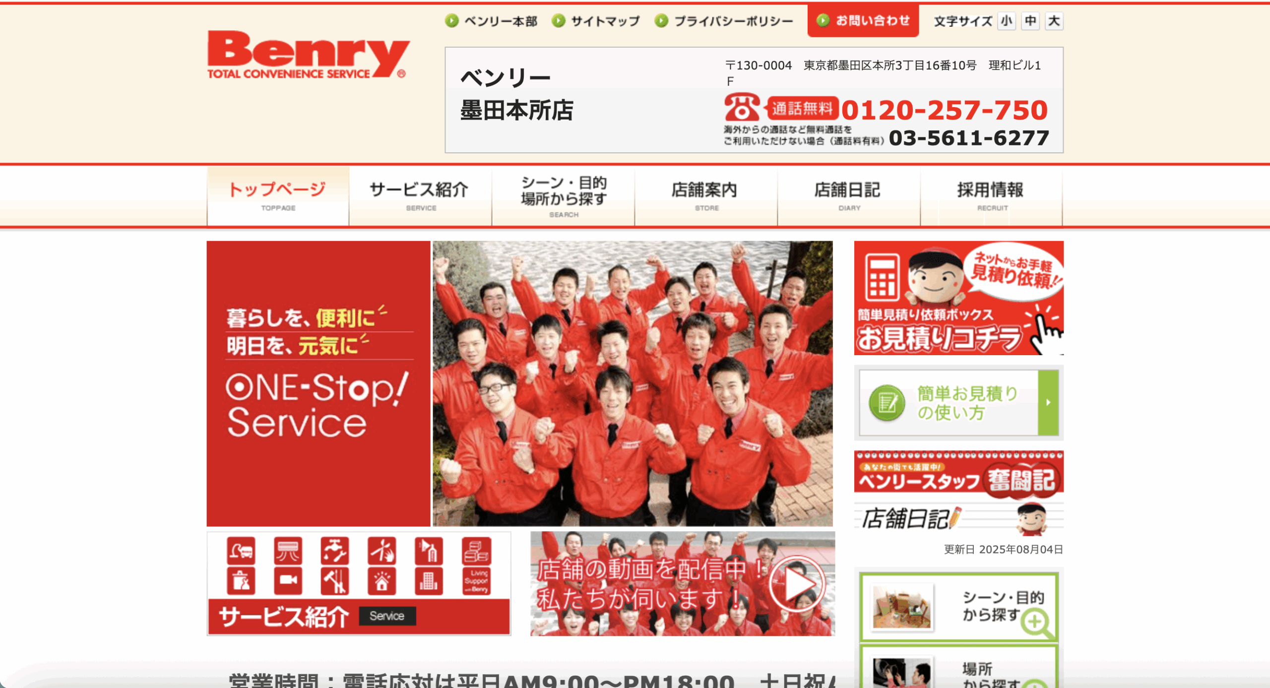 ベンリー墨田本所店は、暮らしの困りごとを解決する全国チェーンの総合便利屋です。