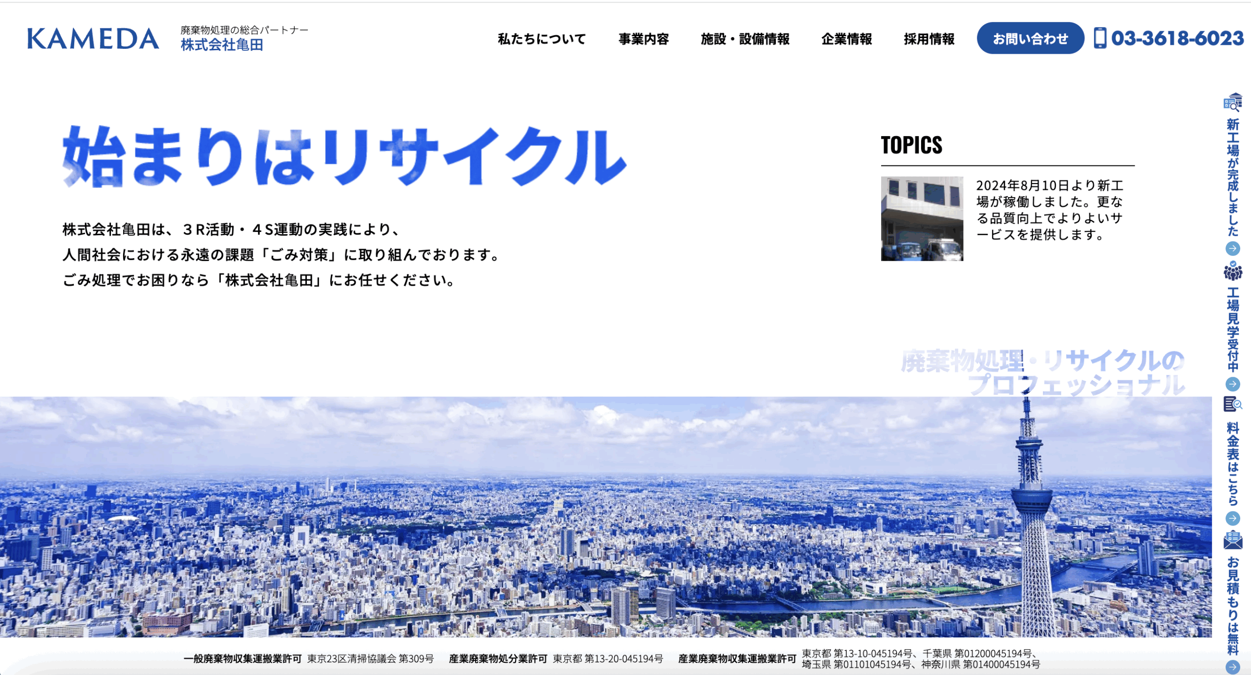 株式会社亀田は、墨田区の許可を持つ昭和61年(1986年)創業の地域密着型老舗企業です。
