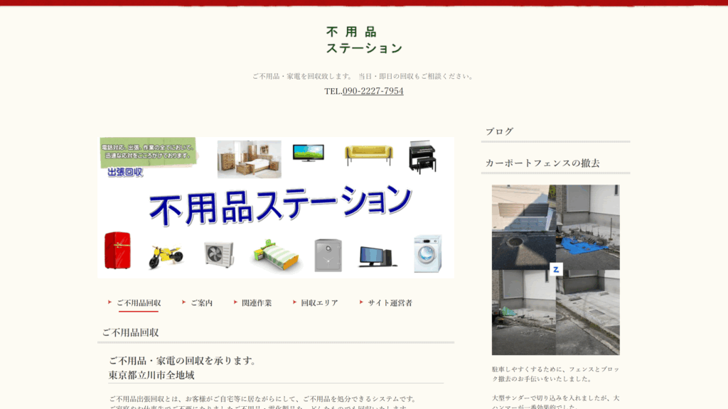 「不用品ステーション」は、東京都近郊で、不用品や粗大ゴミの回収を請け負う地域密着型の業者です。少量からの回収に対応している点が利用しやすさの強み。見積もりは無料で対応しており、事前に費用の目安を提示してもらえるので安心感があります。また、不要品のリサイクルにも注力している姿勢が見られ、環境面を重視した回収を希望する人にも選ばれやすい業者です。