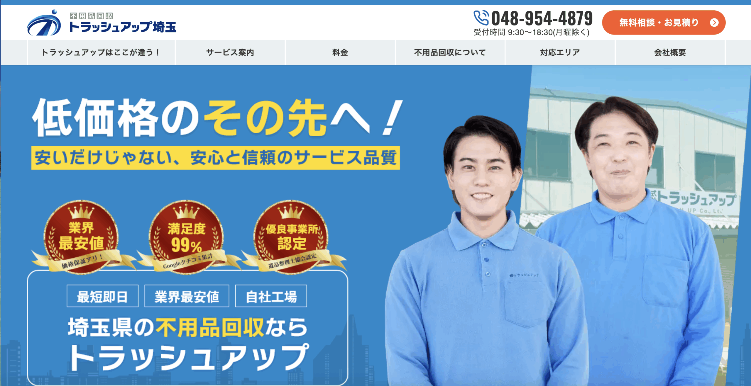 トラッシュアップ埼玉は、不用品回収や遺品整理、ゴミ屋敷の片付けなどを行う業者です。