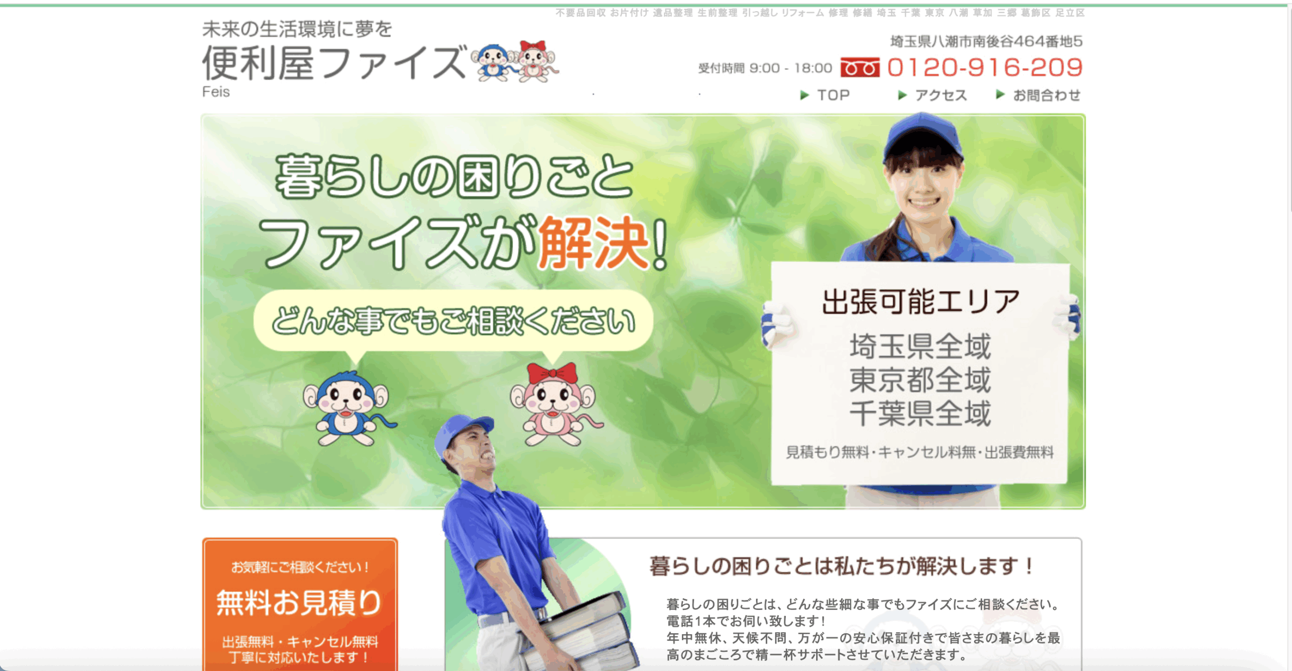 便利屋 ファイズは、出張費・見積もり・キャンセル料がすべて無料で利用できる不用品回収業者です。