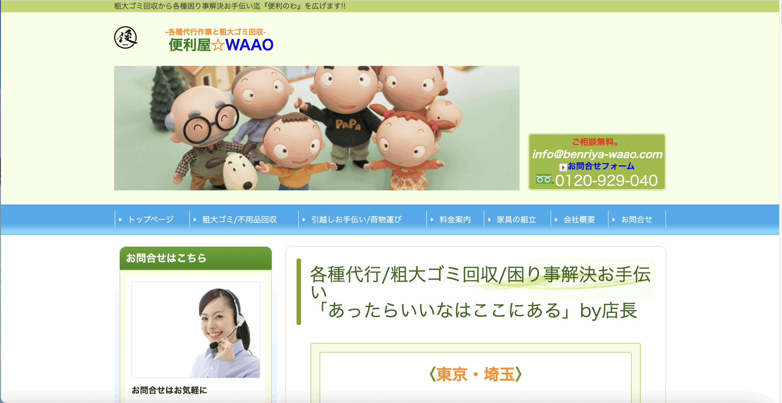 便利屋☆WAAOは、不用品回収から引越し手伝い、ハウスクリーニングまで、暮らしの困りごとに幅広く対応する業者です。