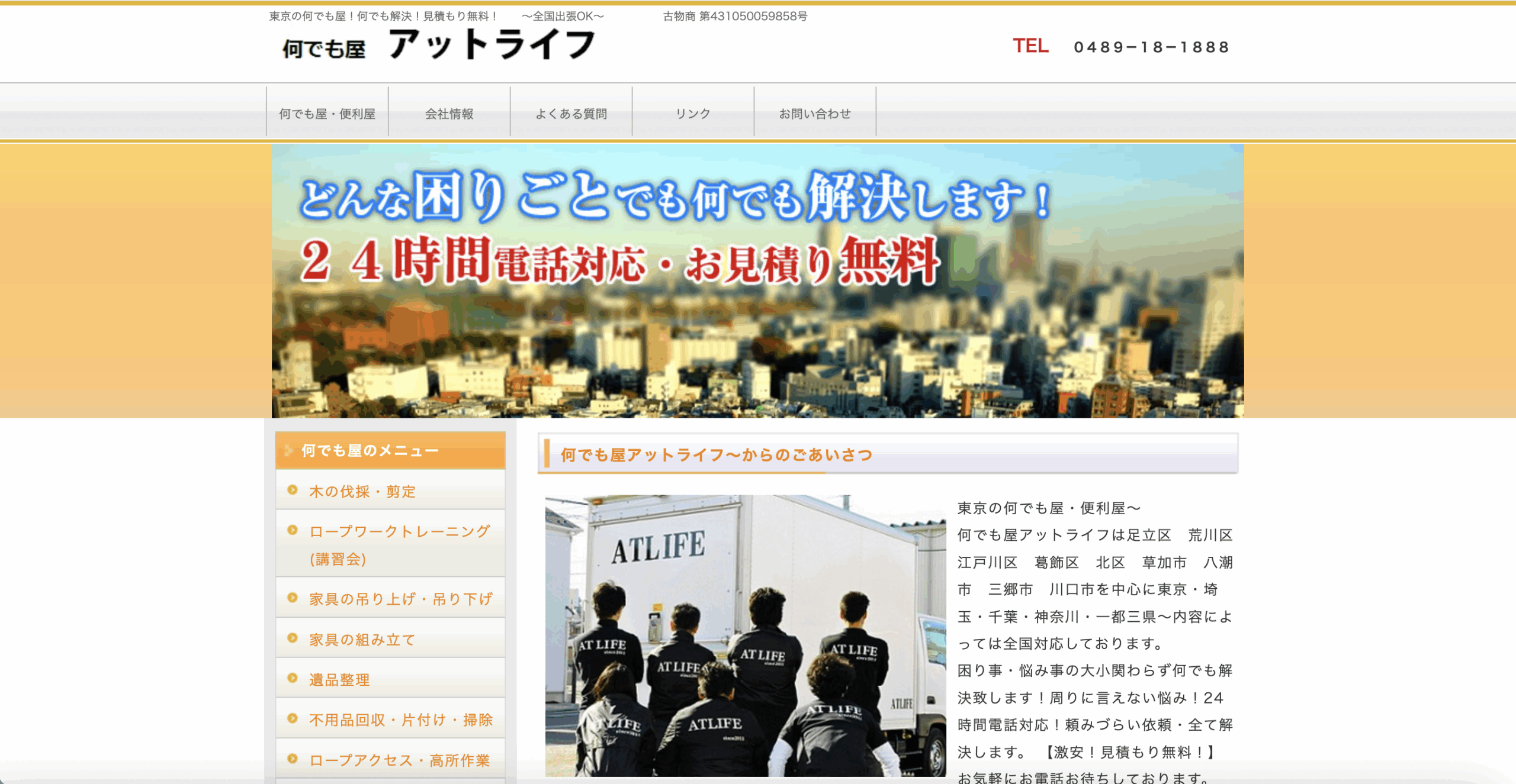 店舗名 | 何でも屋 アットライフ(株式会社アットライフ) |