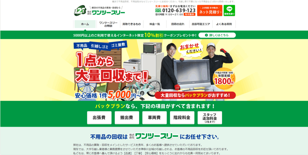 株式会社ワンツースリーは、横浜市を拠点に、不用品回収、遺品整理、生前整理のほか、解体工事やリフォームなど多岐にわたる事業を展開しています。