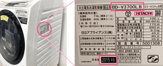 家電製品には、メーカーの他に型番が記載されているシールやラベルがどこかにあります。